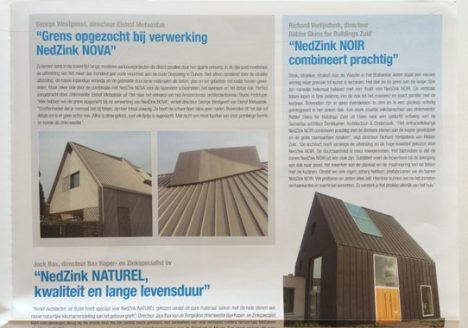 Publicatie: NedZink World nr 01 | 2015 Datum: Januari 2015 Uitgeverij: NedZink Nederland Pagina: 3 “NedZink NOIR combineert prachtig” Strak, strakker, strakst! Aan de Vlasolie in het Brabantse Asten staat een nieuwe woning waar precisie tot kunst is verheven. Het dak en de gevel aan de lange zijde zijn namelijk helemaal bekleed met een ‘huid’ van…