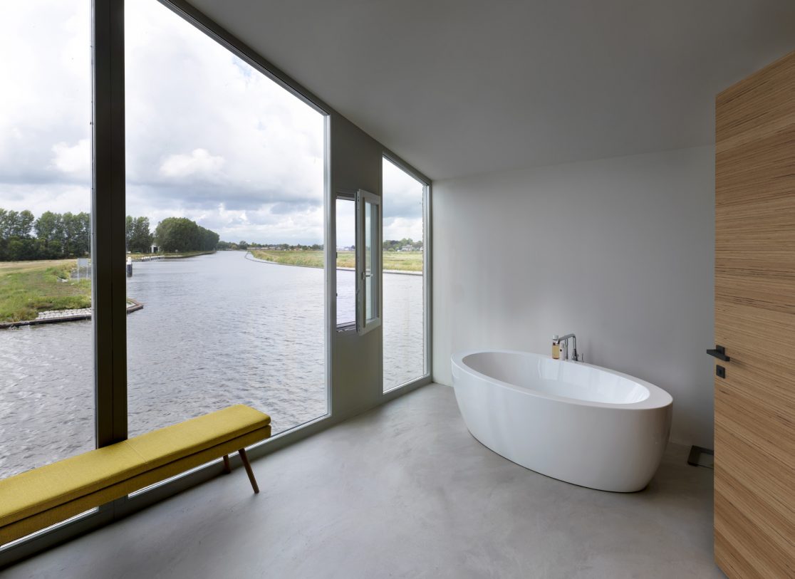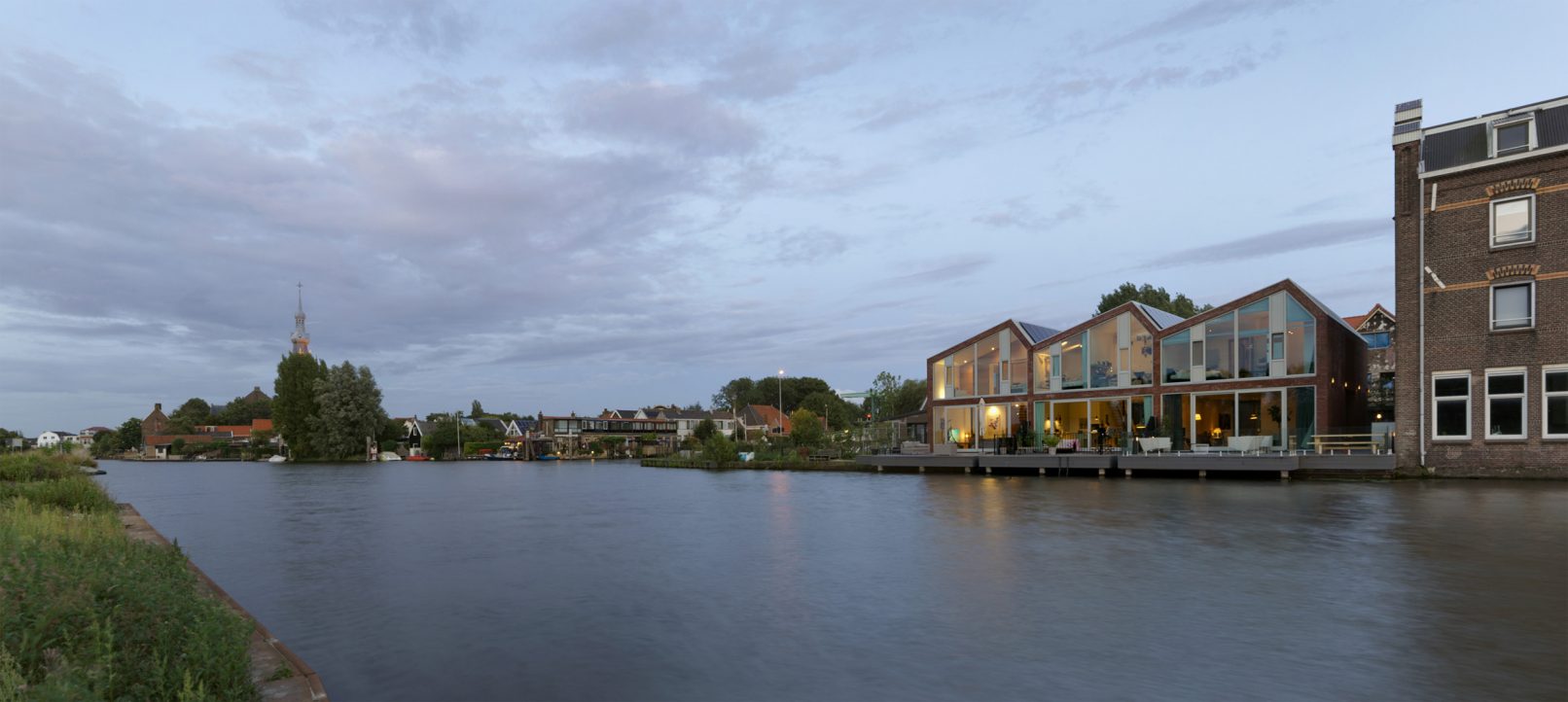 De drie kadewoningen zijn geladen met een aantal componenten welke het maritieme en industriële karakter ademen. De totale gebouwmassa is ontworpen als één groot industrieel complex om de schaal van één enkele woning te overstijgen. Het dak is voorzien van sheddaken, uitgevoerd in geprofileerde staalplaten. In een eenduidig ritme is een metselwerk skelet te herkennen dat is opgebouwd uit schijven die de verdiepingsvloer en het dak dragen. Aan de tuin- en tevens zuidzijde is de invulling tussen de schijven in glas en gepixeld metselwerk uitgevoerd om overmatige opwarming te voorkomen. Aan de water- en tevens noordzijde is deze volledig in glas om maximaal contact te maken met de waterwegen en het oude polderland.