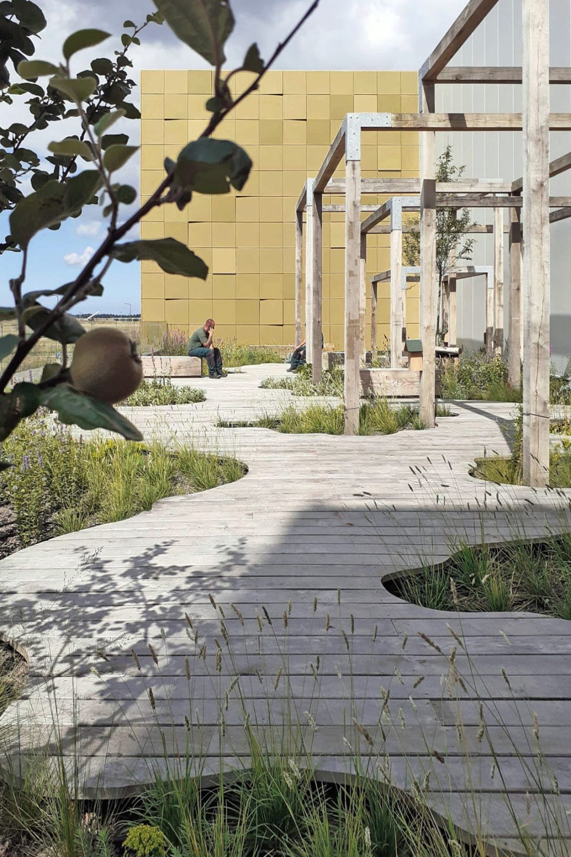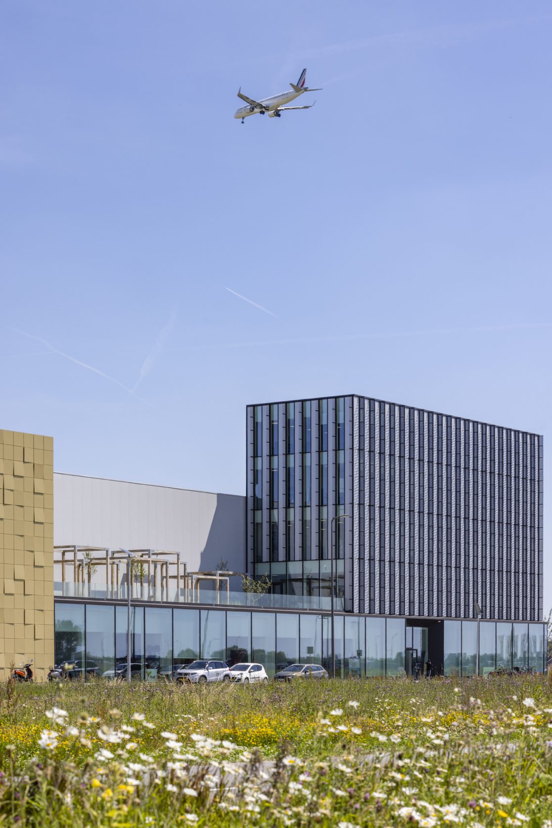 De schil bestaat uit slanke volumes, variërend in hoogte. De hoger gelegen daken zijn voorzien van kruidenrijke groene- en bruine daken en ingericht voor insecten en dak broedende vogels. De lager gelegen daken, beschut tussen de kantoren, dienen als daktuin en bieden een prettig buitenverblijf en pluktuin voor de gebruikers. Een groene sluier en groene oase schermen de laaddocks en het parkeerdek af en vormen een paradijs voor onder andere vlinders en amfibieën en bieden daarbij tevens nestelgelegenheid aan struweelbroeders. De verschillende hoogtes van de volumes in de schil gecombineerd met het verticale groen zijn als stapstenen welke het maaiveld met de nieuwe biotopen verbinden. Hiermee veranderd de monotone ecologie van het polderlandschap van de Haarlemmermeerpolder in een rijkere biodiversiteit op gebouwniveau.