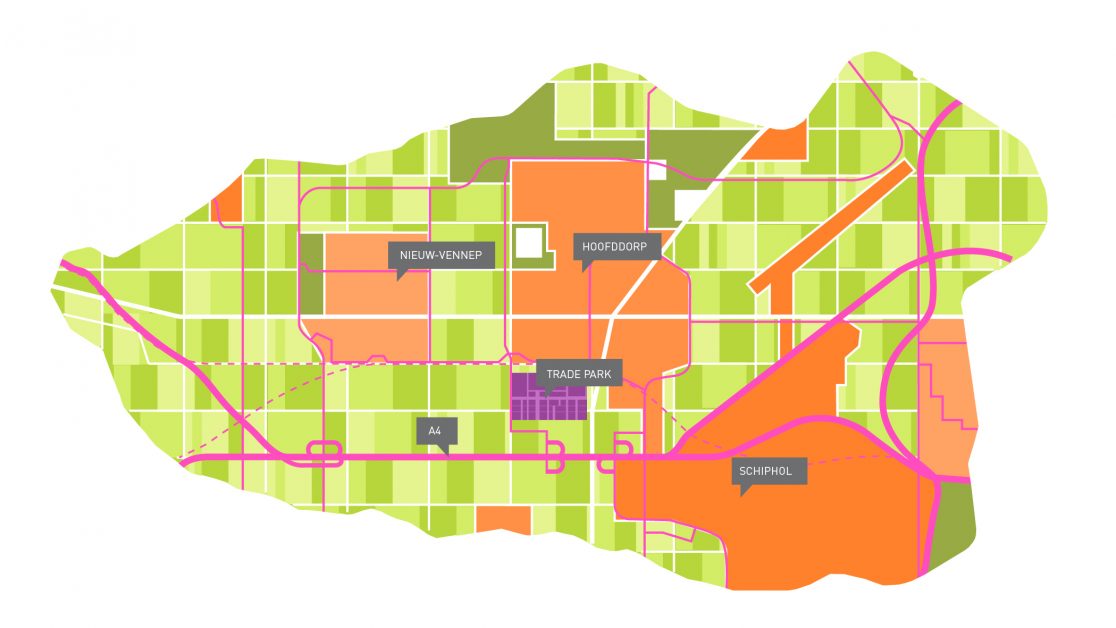 Op tien minuten afstand van de luchthaven Schiphol, direct langs de A4 bij Hoofddorp, ontwikkelt de komende jaren Schiphol Trade Park. Het gebied bestaat uit zes unieke milieus met allemaal een eigen karakter. Samen vormen zij één werklocatie waarbij natuurinclusiviteit en duurzaamheid centraal staat. De ambitie is hoog: het belooft het meest duurzame en innovatieve bedrijventerrein van Europa te worden. Het door ons ontworpen warehouse op het unieke entreekavel is onderdeel van de A4-skyline. Met zijn markante ligging binnen de gebiedsontwikkeling vormt het de entree van het gebied en is het dé blikvanger van Schiphol Trade Park.