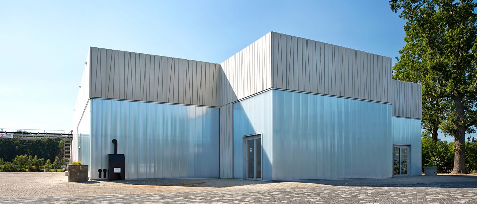 De vormgeving van de installatie komt voort uit de ambitie om het functioneren van de installatie leesbaar te maken. De installatie bestaat uit drie drogingstunnels welke zichtbaar zijn gemaakt door de tunnels ten opzichte van elkaar te verschuiven. Door het verschuiven van de tunnels ten opzichte van elkaar wordt ook de maat en schaal van het gebouw verkleind. Dit wordt verder versterkt door de hoogte boven maaiveld te reduceren en het gebouw in de grond te verzinken.