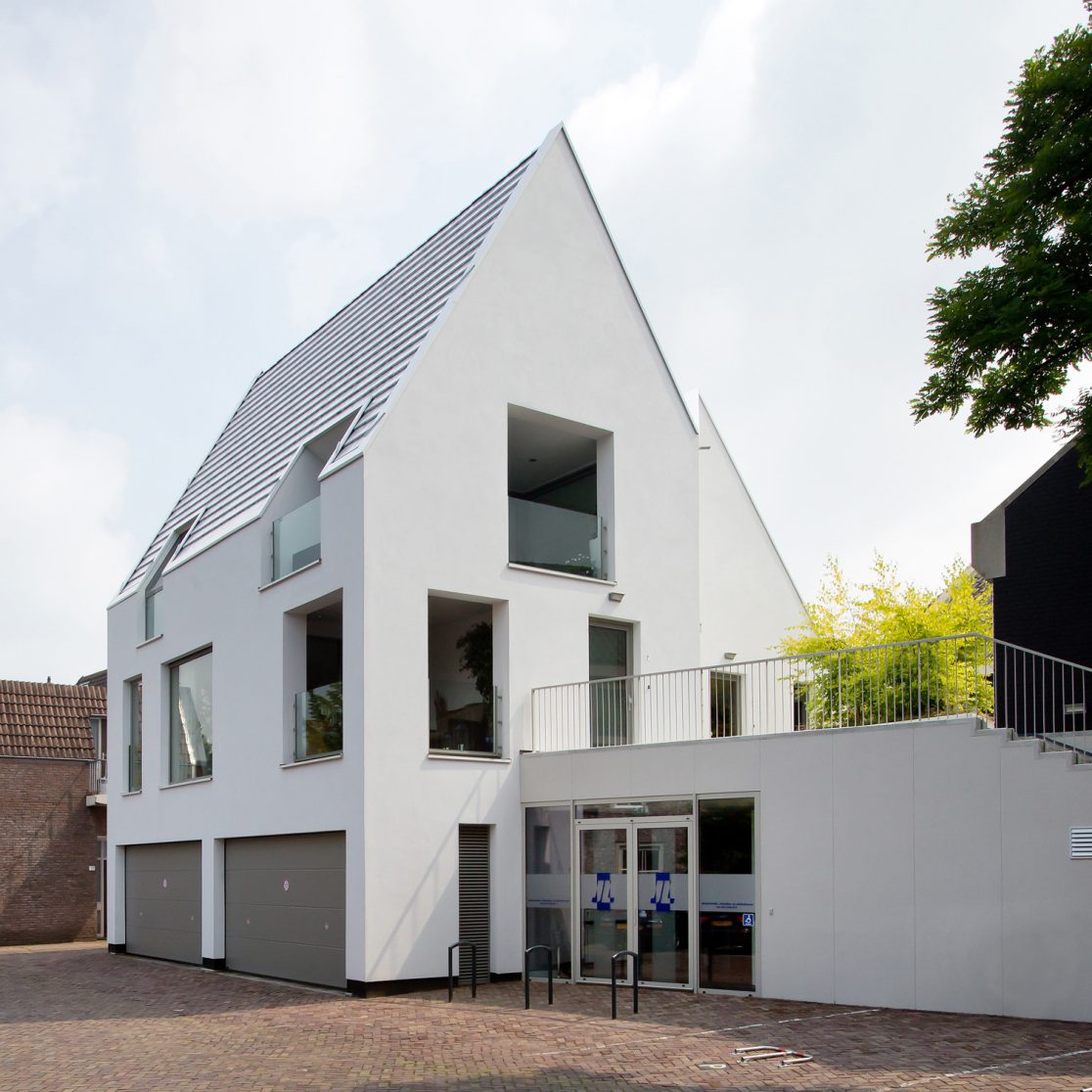 De twee bestaande bouwvolumes aan Nieuwstraat en Ruijschenbergstraat zijn aangevuld met een derde volume aan de Elisabethplaats. Dit derde volume kenmerkt zich door een sterke mate van abstractie. In misschien wel de belangrijkste en historisch meest rijke omgeving van Gemert worden de gebouwen gekenmerkt door baksteen, pleisterwerk, pannen, hellende daken en ornamentering. We hebben ervoor gekozen deze traditie door te zetten maar wel op een heel abstracte manier. Een fris sprankelend en sculpturaal gebouw dat in vorm, massa en materiaalgebruik als een nieuwe telg in de familie gezien kan worden maar tegelijkertijd respect bewaard voor de prachtige rijks monumentale panden.